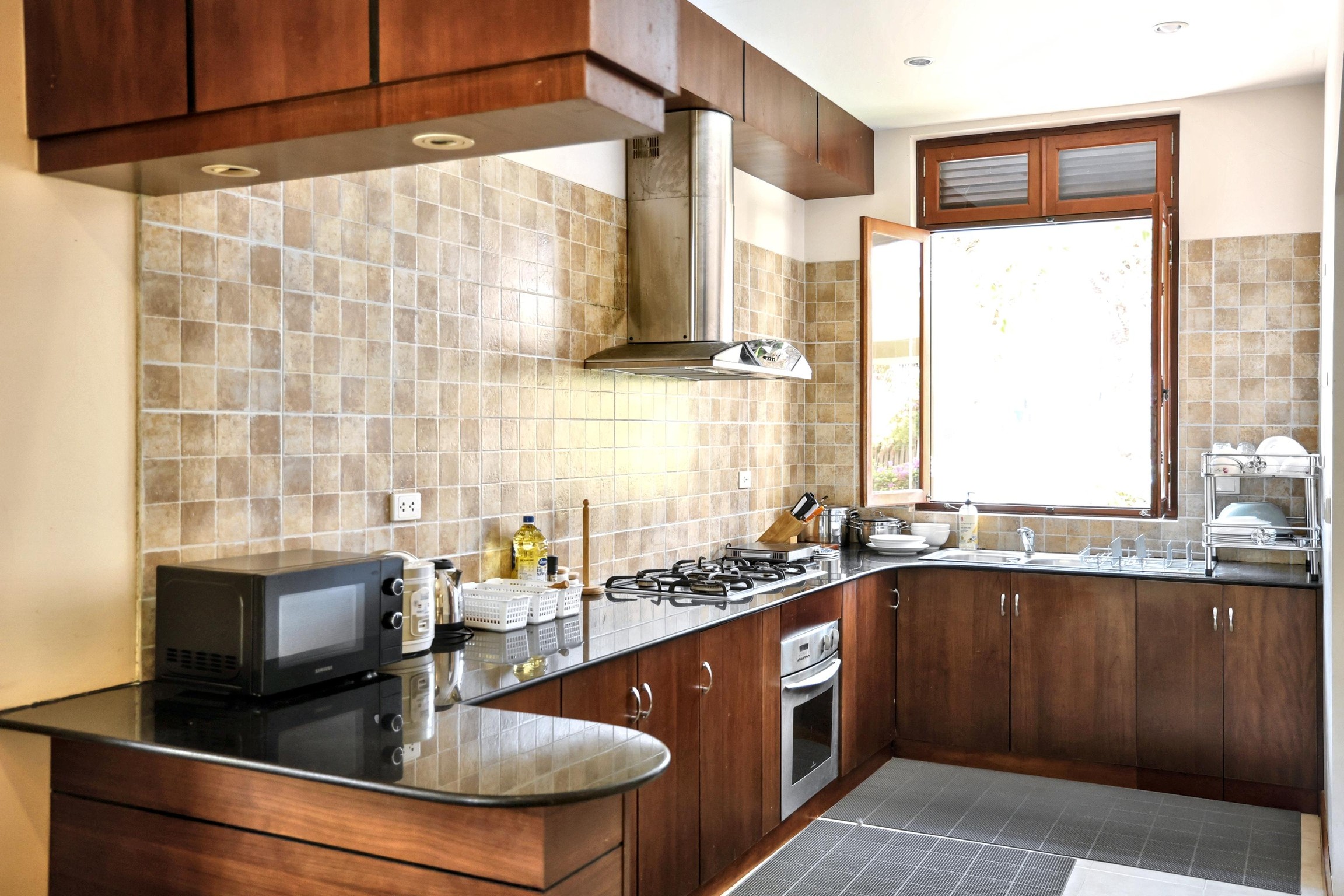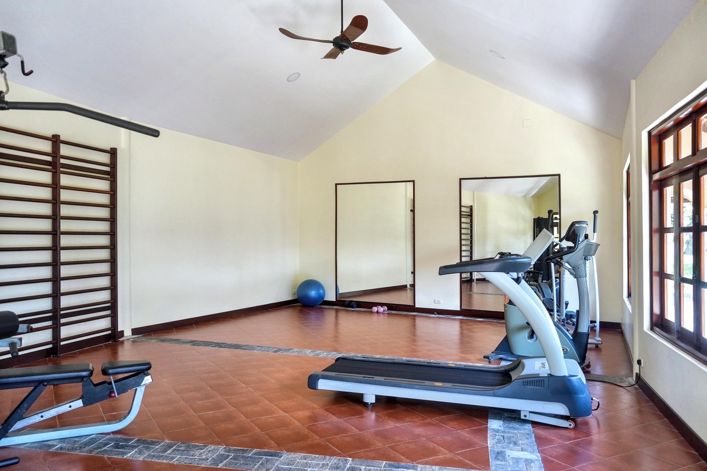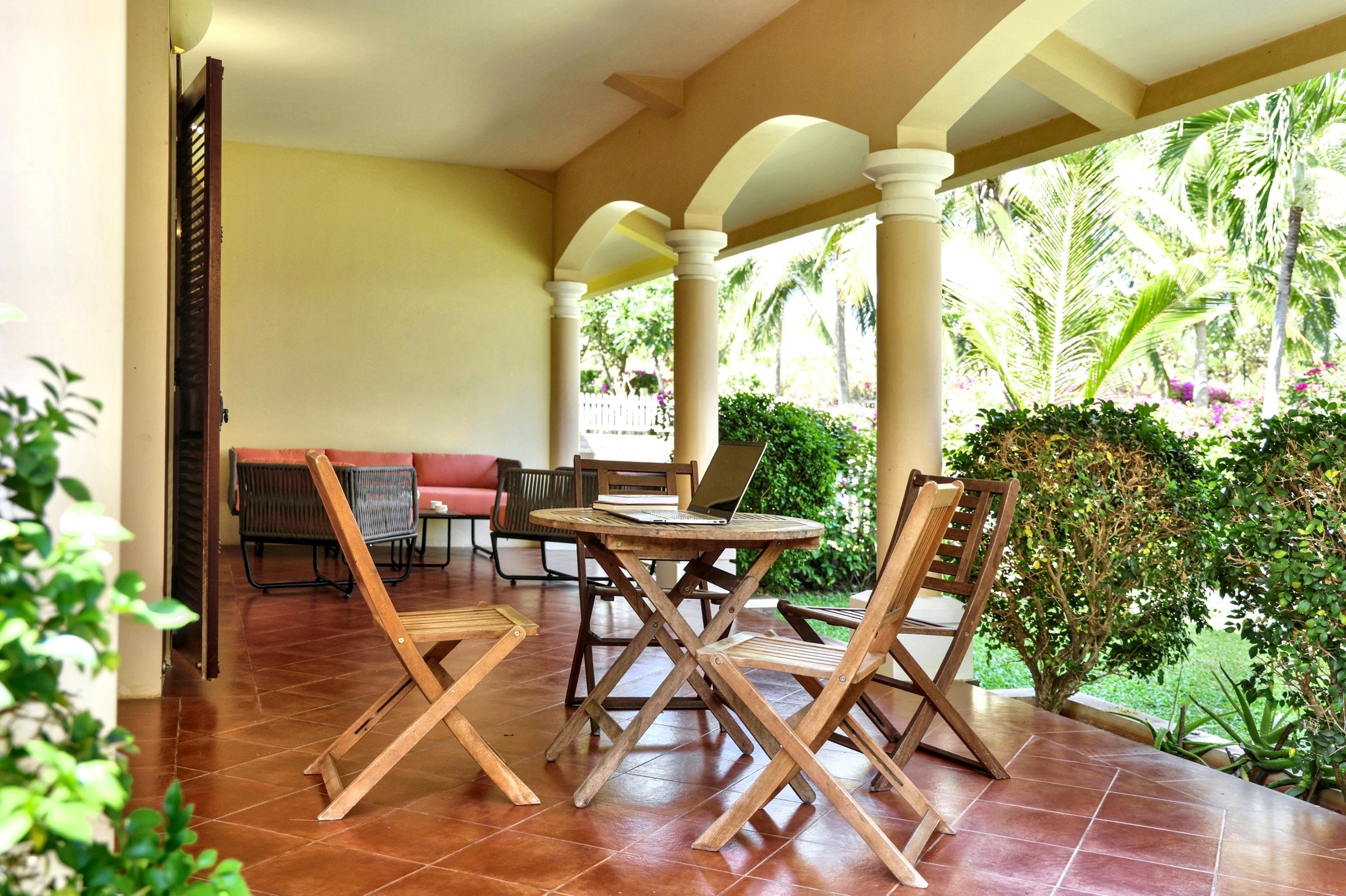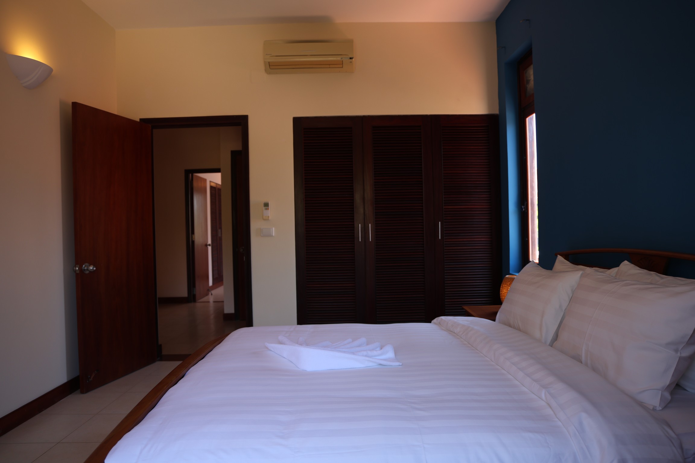 This air-conditioned villa consists of 3 bedrooms, a living room, a fully equipped kitchen with a refrigerator and a coffee machine, and 3 bathrooms with a bidet and a shower. Towels and bed linen are provided.